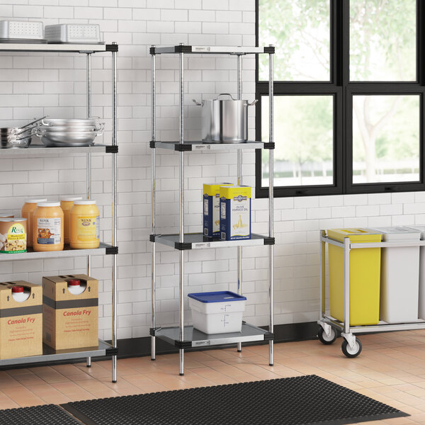 This reliable and versatile unit boasts a durable construction, allowing you to store your essential products with peace of mind. Plus, assembly is fast and easy, so you can start using the shelving unit quickly. Whether you're in a kitchen, retail, or industrial environment, this shelving unit is a reliable and efficient storage solution.