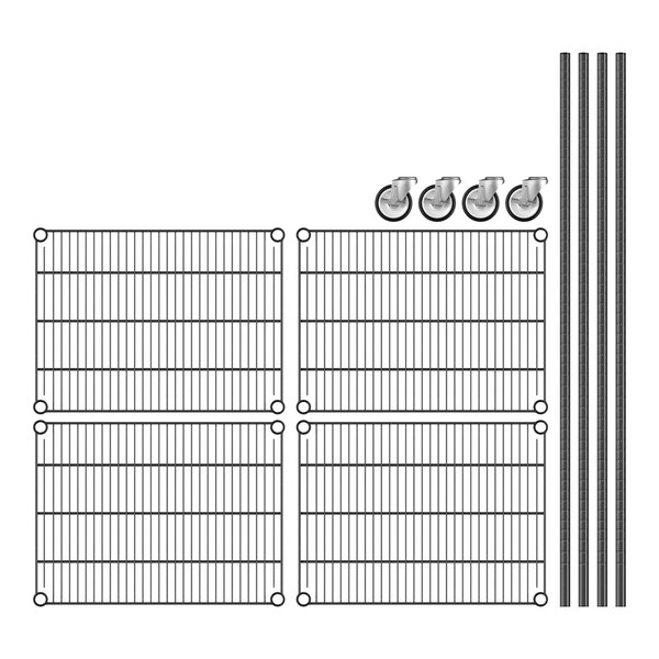 View All ItemsKeep your storage area organized with this Regency 18" NSF black epoxy mobile wire shelving starter kit with 4 shelves!
