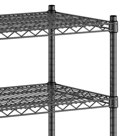 The epoxy coating resists corrosion to ensure long-lasting use, and it is suitable for use in dry, humid, or moist environments, making the unit a multi-purpose investment that's sure to accommodate your ever-evolving needs. Because the coating is black, it's subtle and professional, perfect for office settings or for merchandising applications and front-of-house sales. Plus, the included 5" casters allow for quick access and easy cleaning, and the casters are equipped with brakes to secure the unit in place when needed.