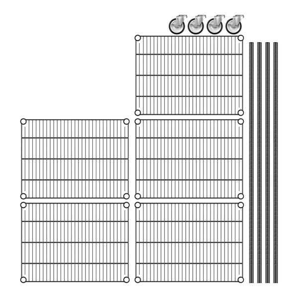 Each shelf features a wire construction, which allows for proper airflow around the stored supplies, products, or ingredients, and each shelf accommodates an ample amount of evenly distributed weight. For your convenience, the shelves are also adjustable and can be moved higher or lower along the posts.