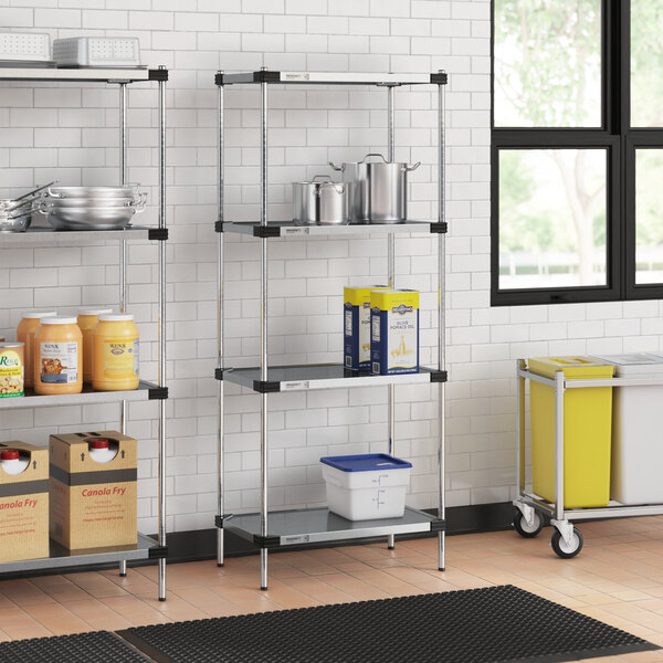 This reliable and versatile unit boasts a durable construction, allowing you to store your essential products with peace of mind. Plus, assembly is fast and easy, so you can start using the shelving unit quickly. Whether you're in a kitchen, retail, or industrial environment, this shelving unit is a reliable and efficient storage solution.