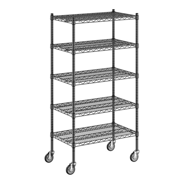 The epoxy coating resists corrosion to ensure long-lasting use, and it is suitable for use in dry, humid, or moist environments, making the unit a multi-purpose investment that's sure to accommodate your ever-evolving needs. Because the coating is black, it's subtle and professional, perfect for office settings or for merchandising applications and front-of-house sales. Plus, the included 5" casters allow for quick access and easy cleaning, and the casters are equipped with brakes to secure the unit in place when needed.