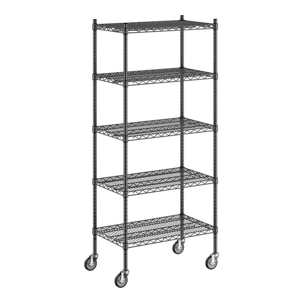 Regency 18" x 30" x 70" NSF Black Epoxy Mobile Wire Shelving Starter Kit with 5 Shelves
