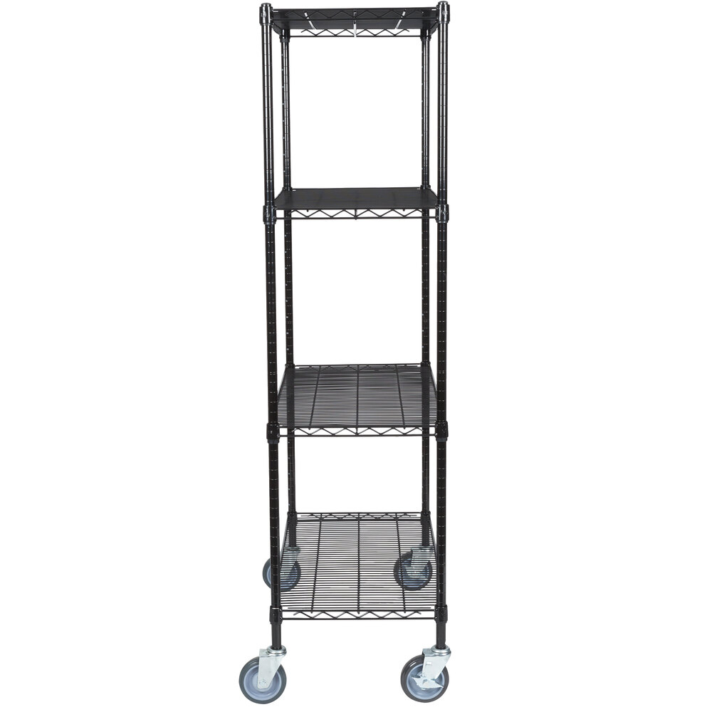 Keep your storage area organized with the Regency 18" wide NSF black epoxy 4-shelf starter kit.