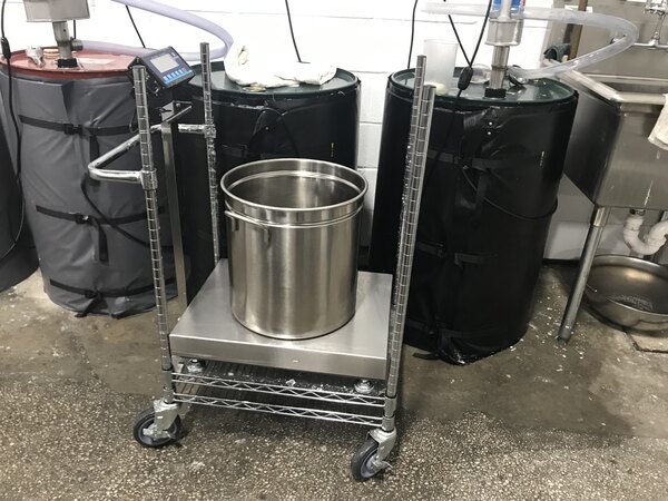 We have to weigh our soap batters. We took two of the shelves off and kept the bottom one on and then placed our scale on it. This allows us to go from one batter to the next to weigh without having to carry the batters across the warehouse. This cart has saved so much time! Definitely would recommend.