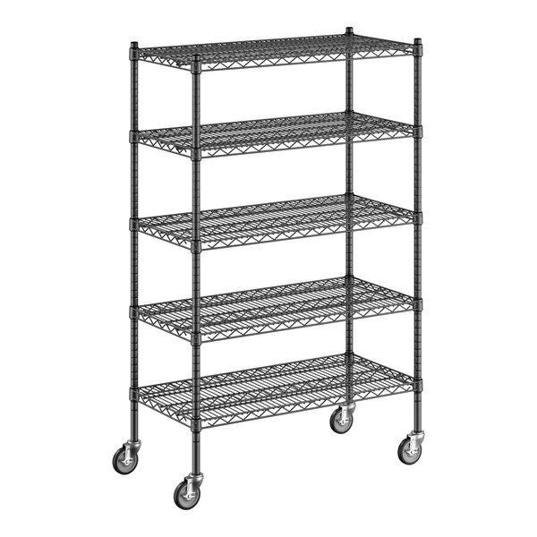The epoxy coating resists corrosion to ensure long-lasting use, and it is suitable for use in dry, humid, or moist environments, making the unit a multi-purpose investment that's sure to accommodate your ever-evolving needs. Because the coating is black, it's subtle and professional, perfect for office settings or for merchandising applications and front-of-house sales. Plus, the included 5" casters allow for quick access and easy cleaning, and the casters are equipped with brakes to secure the unit in place when needed.