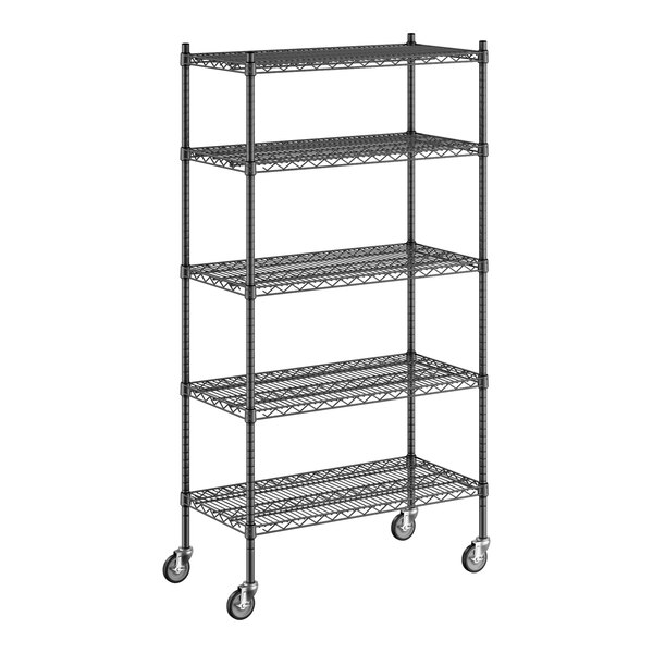 Regency 18" x 36" x 70" NSF Black Epoxy Mobile Wire Shelving Starter Kit with 5 Shelves