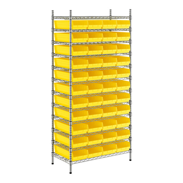 View All ItemsMaintain an organized industrial space with this Regency 18" x 36" x 74" wire shelving unit with 44 yellow bins.