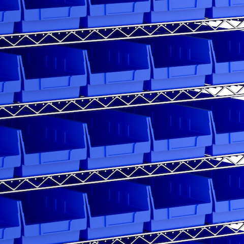 The included high-density, injection-molded shelf bins are designed to withstand the rigors of industrial environments, feature a highly durable polypropylene construction with reinforced edges, and are impervious to most chemicals.