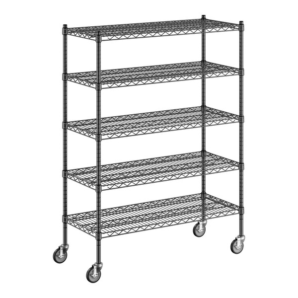 The epoxy coating resists corrosion to ensure long-lasting use, and it is suitable for use in dry, humid, or moist environments, making the unit a multi-purpose investment that's sure to accommodate your ever-evolving needs. Because the coating is black, it's subtle and professional, perfect for office settings or for merchandising applications and front-of-house sales. Plus, the included 5" casters allow for quick access and easy cleaning, and the casters are equipped with brakes to secure the unit in place when needed.
