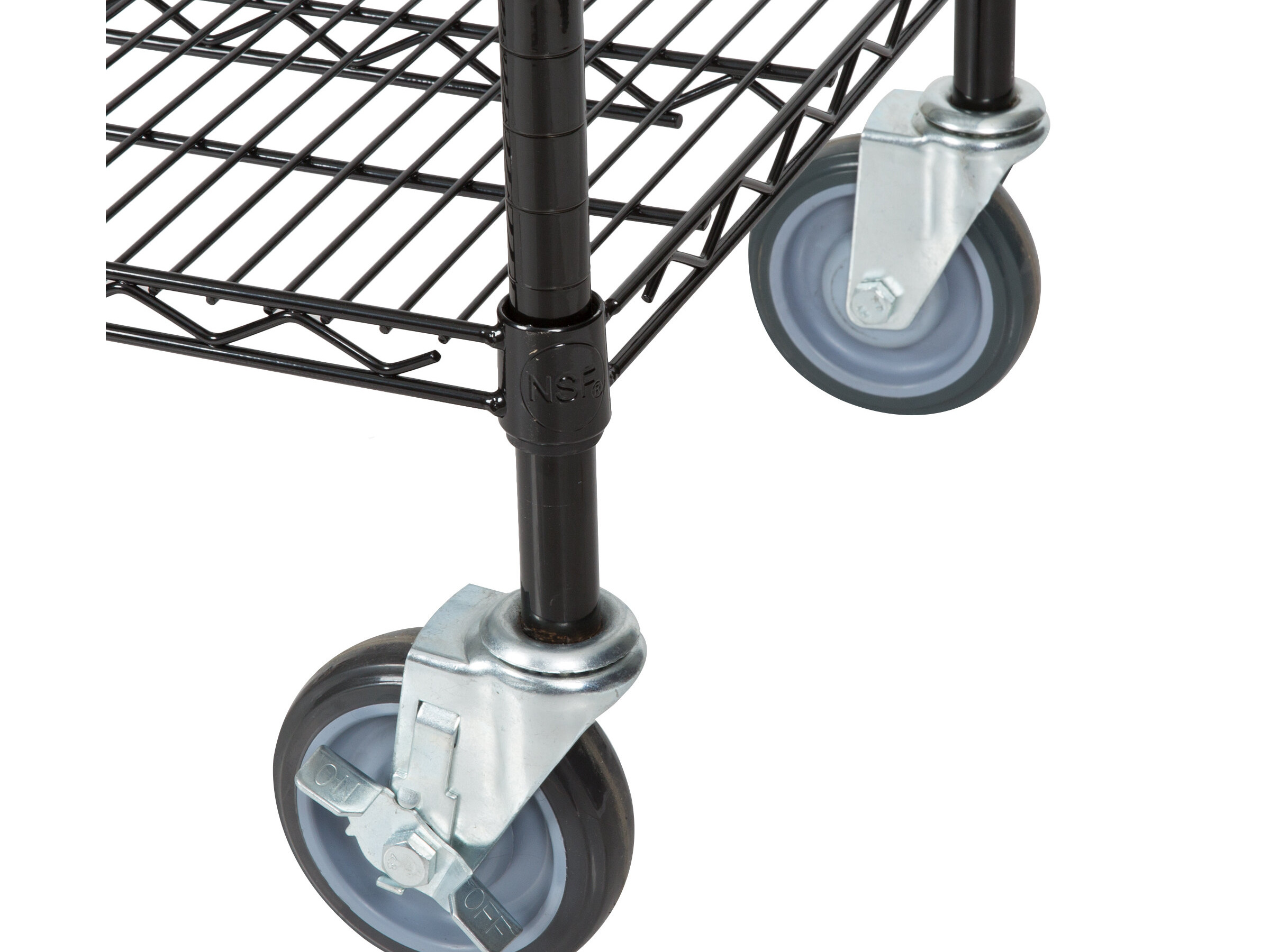 • (4) 64" posts to adjust shelves included; all 5" casters include brakes and support up to 1,320 lb.