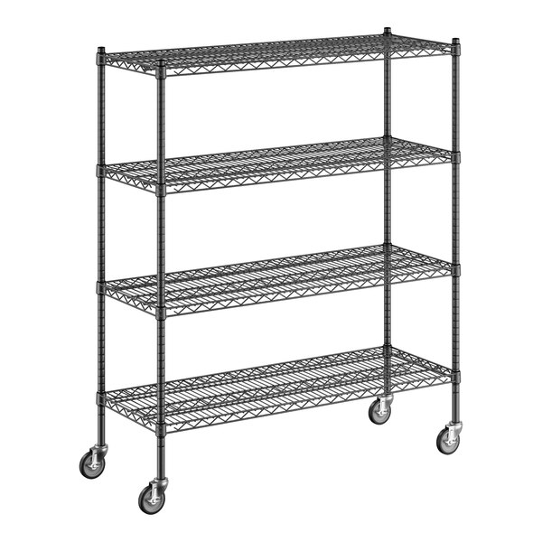 Regency 18" x 48" x 60" NSF Black Epoxy Mobile Wire Shelving Starter Kit with 4 Shelves