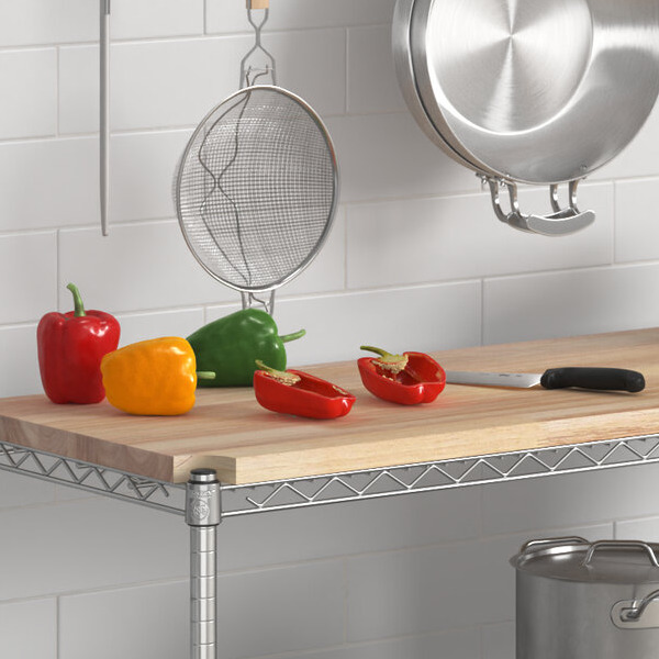 For even more storage needs, this baker's rack includes (2) 18" x 48" chrome wire shelves, perfect for storing mixing bowls, disposable paper products, or cleaning supplies. These commercial-grade wire shelves are constructed of durable chrome-plated metal for maximum longevity. This Regency baker's rack not only makes a great storage solution, but it also makes a versatile work station with (1) included 18" x 48" x 1/2" hardwood cutting board insert, making it ideal for a variety of tasks, including chopping vegetables and fruits, prepping batters, and providing your staff with additional workspace.