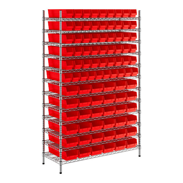 Regency 18" x 48" x 74" Wire Shelving Unit with 91 Red Bins
