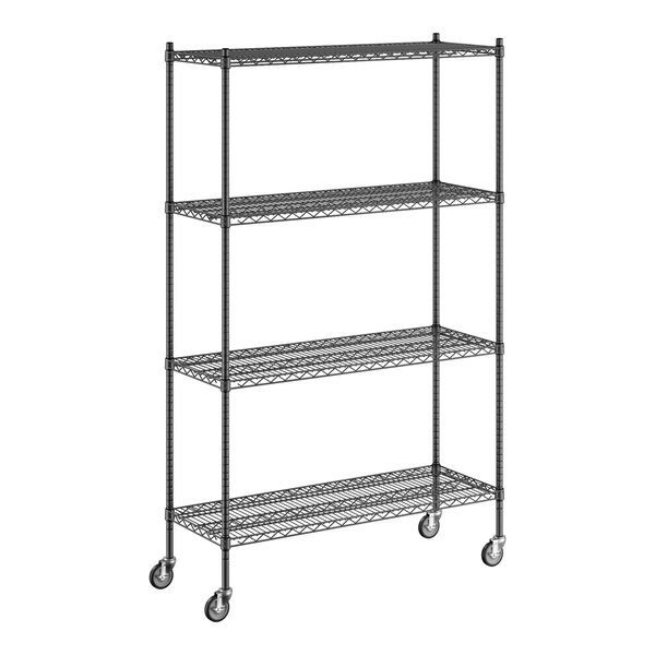 Regency 18" x 48" x 80" NSF Black Epoxy Mobile Wire Shelving Starter Kit with 4 Shelves