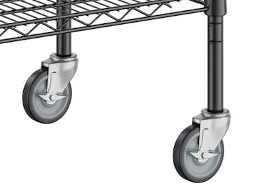 • (4) 64" posts to adjust shelves included; all 5" casters include brakes