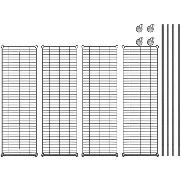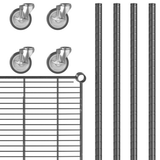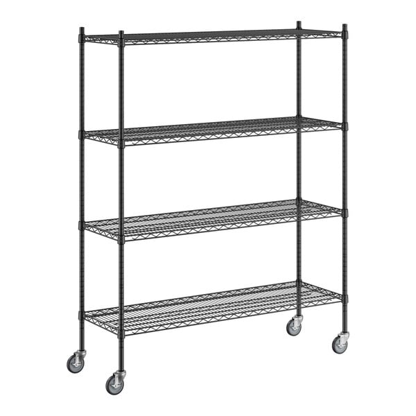 Regency 460B1854KM64 18" x 54" NSF Black Epoxy 4-Shelf Starter Kit with 64" Posts and Casters