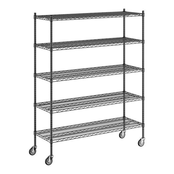 Regency 18" x 54" x 70" NSF Black Epoxy Mobile Wire Shelving Starter Kit with 5 Shelves
