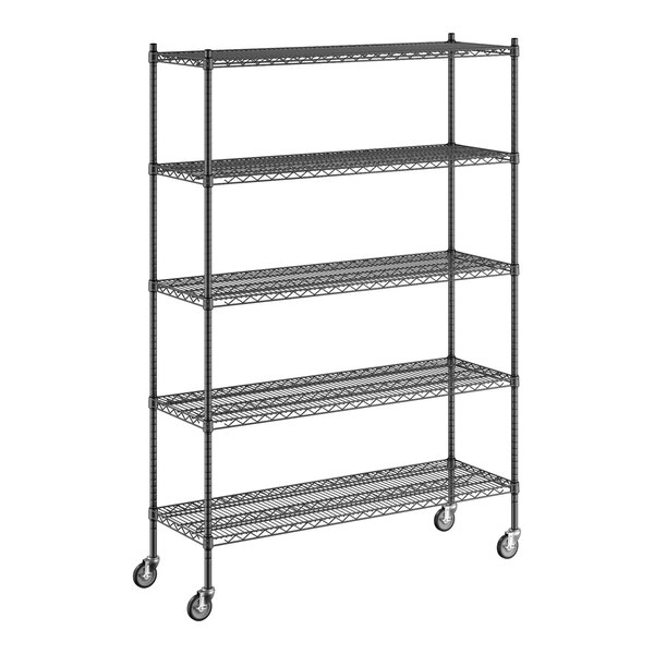 Regency 18" x 54" x 80" NSF Black Epoxy Mobile Wire Shelving Starter Kit with 5 Shelves