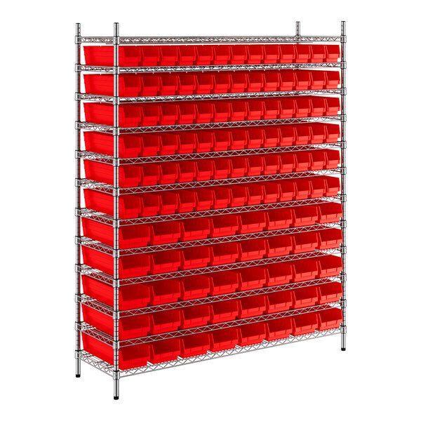 Regency 18" x 60" x 74" Wire Shelving Unit with 118 Red Bins
