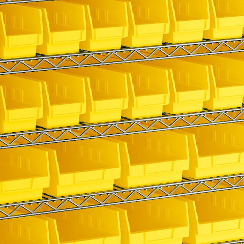 The included high-density, injection-molded shelf bins are designed to withstand the rigors of industrial environments, feature a highly durable polypropylene construction with reinforced edges, and are impervious to most chemicals.
