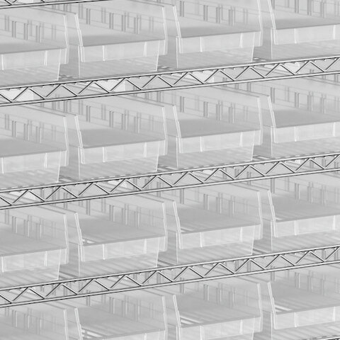 The included high-density, injection-molded shelf bins are designed to withstand the rigors of industrial environments, feature a highly durable polypropylene construction with reinforced edges, and are impervious to most chemicals.