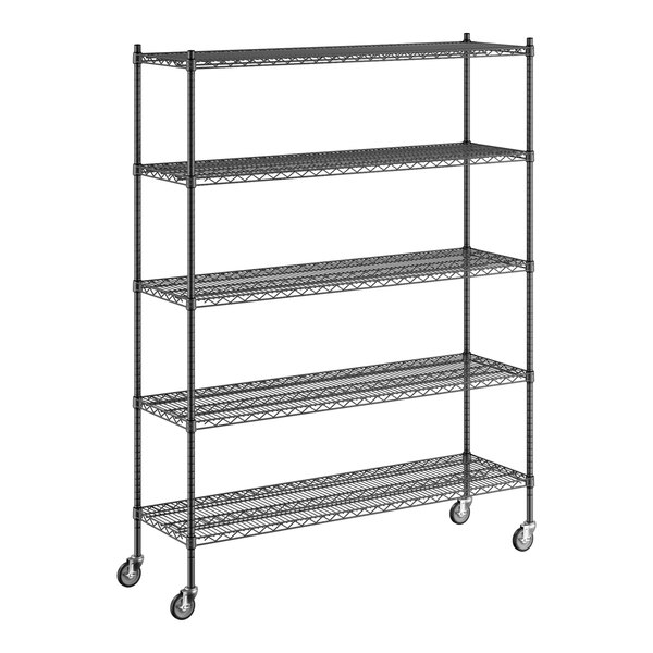 Regency 18" x 60" x 80" NSF Black Epoxy Mobile Wire Shelving Starter Kit with 5 Shelves