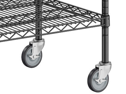 • (4) 64" posts to adjust shelves included; all 5" casters include brakes
