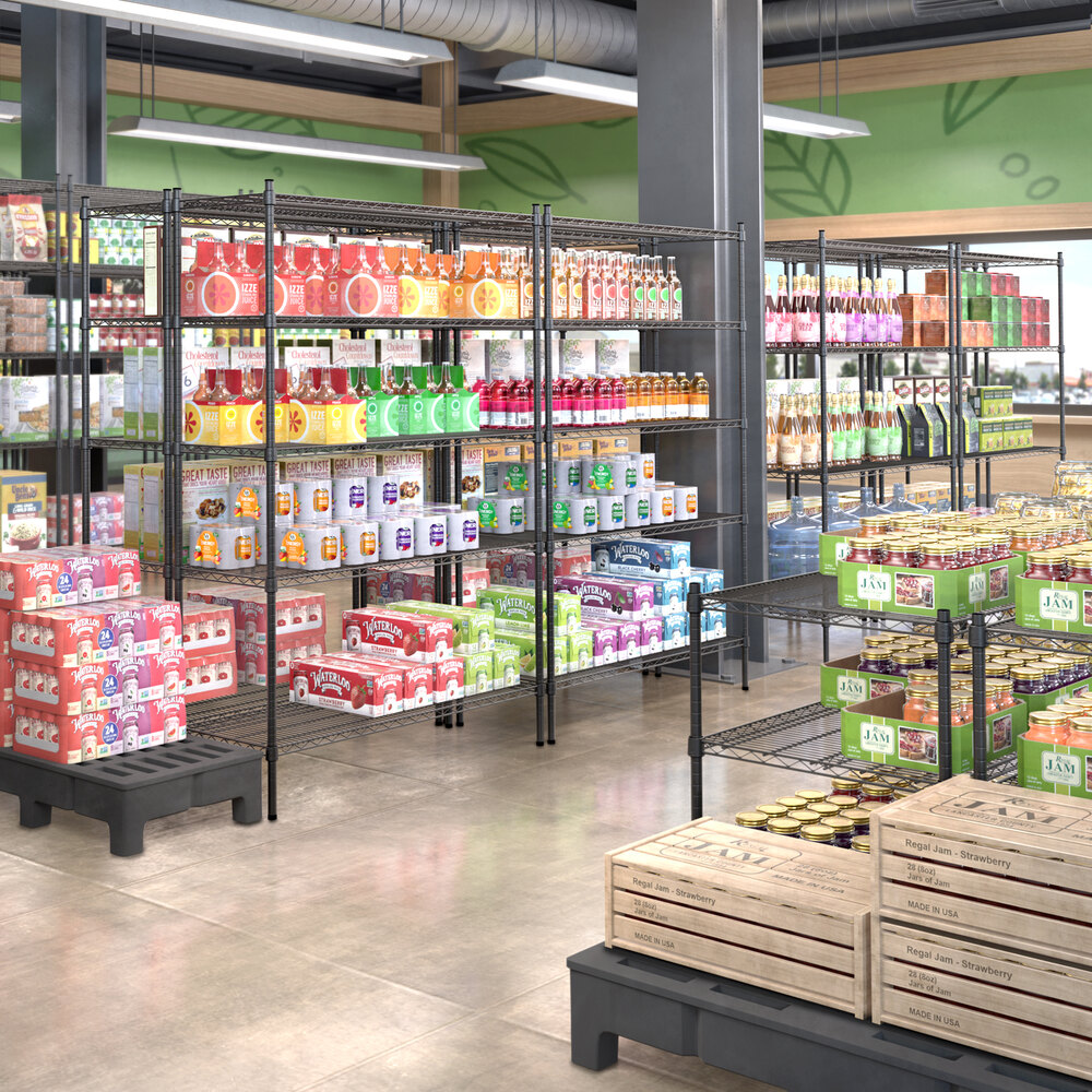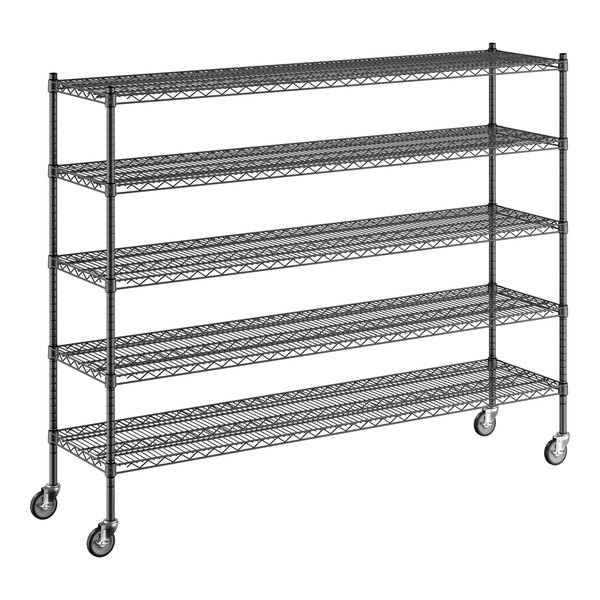 The epoxy coating resists corrosion to ensure long-lasting use, and it is suitable for use in dry, humid, or moist environments, making the unit a multi-purpose investment that's sure to accommodate your ever-evolving needs. Because the coating is black, it's subtle and professional, perfect for office settings or for merchandising applications and front-of-house sales. Plus, the included 5" casters allow for quick access and easy cleaning, and the casters are equipped with brakes to secure the unit in place when needed.
