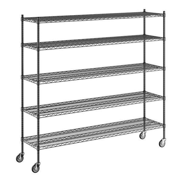 Regency 18" x 72" x 70" NSF Black Epoxy Mobile Wire Shelving Starter Kit with 5 Shelves