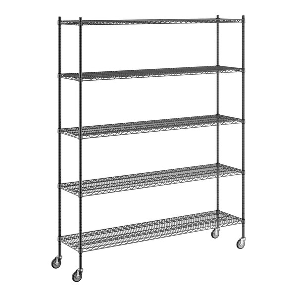 Regency 18" x 72" x 92" NSF Black Epoxy Mobile Wire Shelving Starter Kit with 5 Shelves
