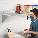 Keep food, dishes, or other small items from cluttering your work area with this Regency wall shelf! Simply attach the shelf to your wall, and you can keep your most used ingredients, supplies, and hand tools within reach without using up all of your valuable counter space. Plus, all the raw edges are ground smooth, getting rid of any sharp or jagged lines in order to keep your staff members safe.