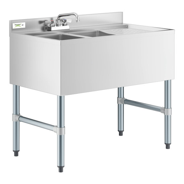 - Item #: 60b22136r9kRegency 2 Bowl Underbar Sink with Faucet and Right Drainboard - 36" x 21"