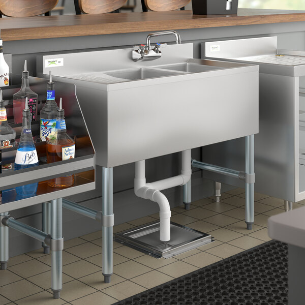 Try this Regency 2 Bowl Underbar Sink with Faucet and Left Drainboard - 36" x 18 3/4" instead! With similar benefits and features, this upgrade features a fully equipped chrome-plated brass faucet with 1/2" NPS inlets and an 8" swing spout.