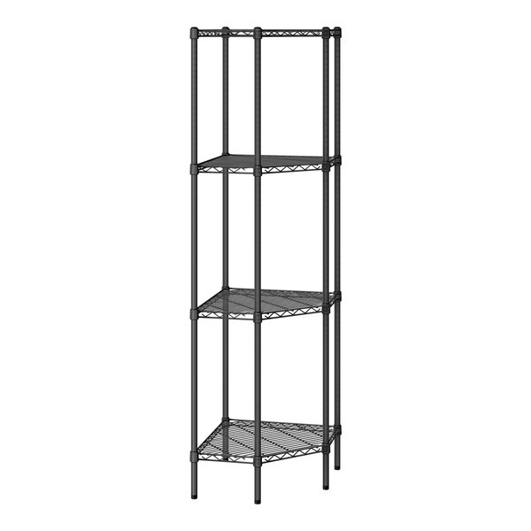 Make the most of your space with this Regency NSF black epoxy wire pentagon corner 4-shelf kit.