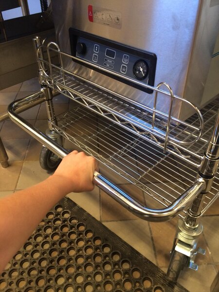 Make moving your shelving units easier than ever thanks to this Regency 21" green epoxy U-shaped handle! When combined with casters (sold separately), this handle gives you the ability to create a convenient mobile unit. Easy to attach, this handle extends 5 3/4" out from the unit and provides 4 3/4" of grabbing space.