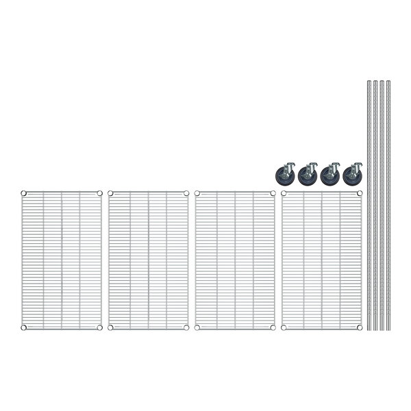 Regency Spec Line 21" x 36" x 70" NSF Stainless Steel Wire Mobile Shelving Starter Kit with 4 Shelves