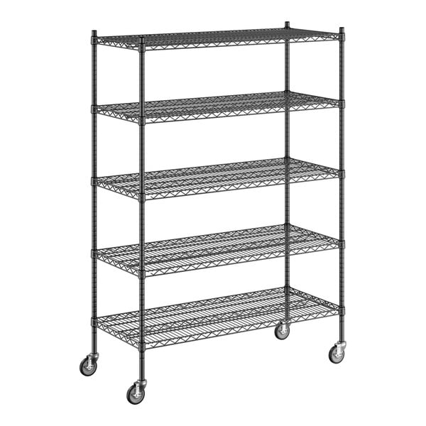 Regency 21" x 48" x 70" NSF Black Epoxy Mobile Wire Shelving Starter Kit with 5 Shelves