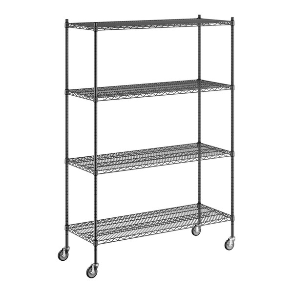 Regency 21" x 54" x 80" NSF Black Epoxy Mobile Wire Shelving Starter Kit with 4 Shelves