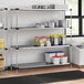 Crafted from durable 18-gauge galvanized steel, this shelving unit is built to last in busy commercial environments. Each shelf can accommodate up to 450 lb. of evenly distributed weight, making it perfect for storing a variety of items such as spices, small kitchen appliances, cleaning supplies, or ingredients. The raised edges on the shelves help keep stored items contained, preventing messes from spills or leaks.