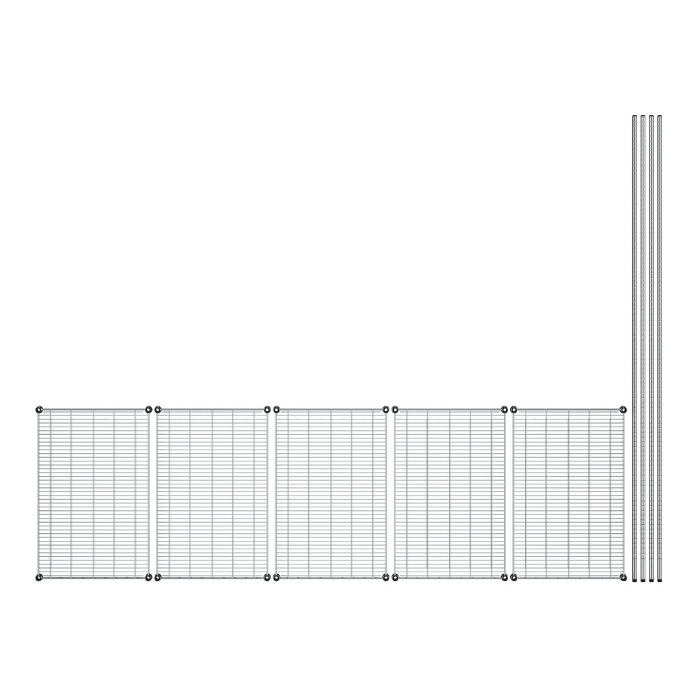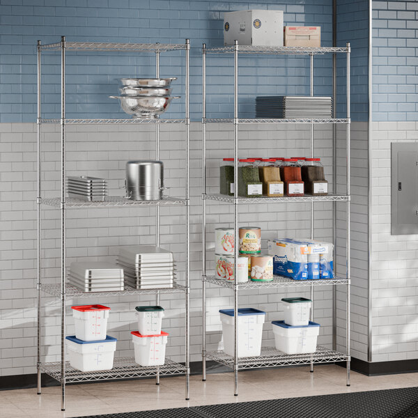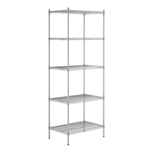 Keep your storage area clean and organized with this Regency 24" wide NSF chrome shelf kit. This kit includes (5) 24" wide wire shelves and (4) 96" posts, which allow you to create a convenient storage solution for your stockroom, warehouse, or garage. Plus, its sleek chrome finish is the perfect choice for use in any back-of-house environment or display setting with minimal humidity. Each shelf is able to support an impressive amount of evenly distributed weight as well, and they will facilitate proper airflow around stored supplies to help prolong the shelf life of food. The 96” posts can also be easily adjusted to accommodate the ever-changing needs of your business.