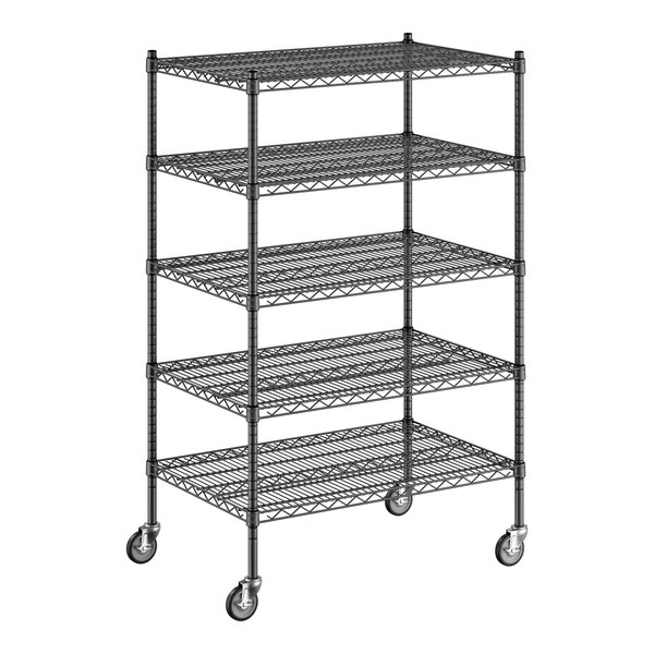 Regency 24" x 36" x 60" NSF Black Epoxy Mobile Wire Shelving Starter Kit with 5 Shelves