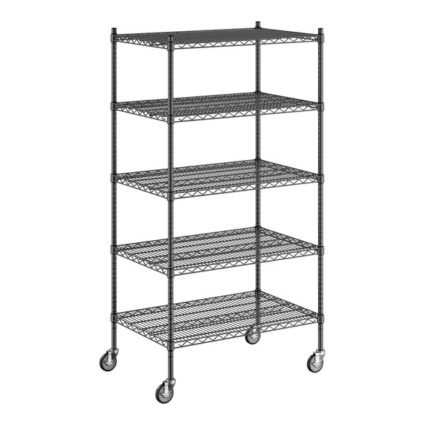 Keep your storage area organized with this Regency 24" wide NSF black epoxy mobile wire shelving starter kit with 5 shelves and 64" posts!