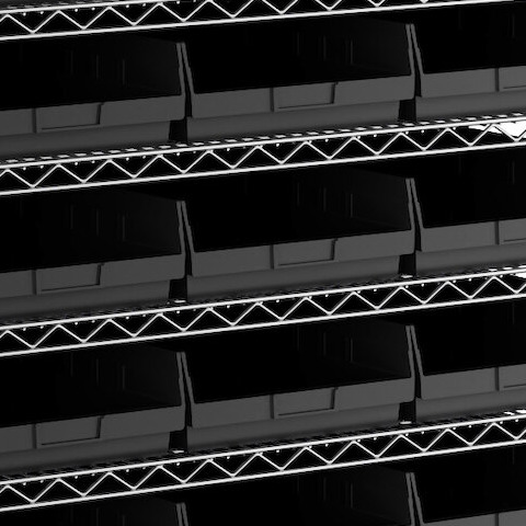 The included high-density, injection-molded shelf bins are designed to withstand the rigors of industrial environments, feature a highly durable polypropylene construction with reinforced edges, and are impervious to most chemicals.