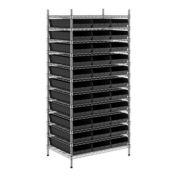 View All ItemsMaintain an organized industrial space with this Regency 24" x 36" x 74" wire shelving unit with 33 black bins.