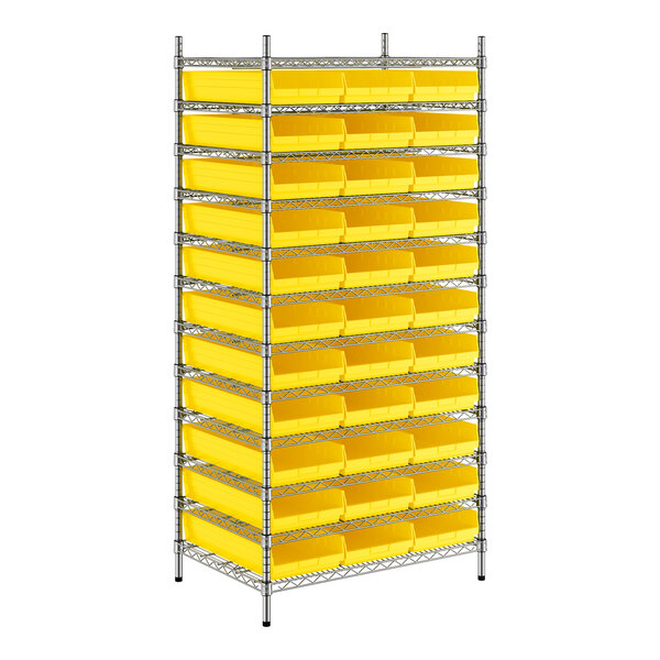 View All ItemsMaintain an organized industrial space with this Regency 24" x 36" x 74" wire shelving unit with 33 yellow bins.