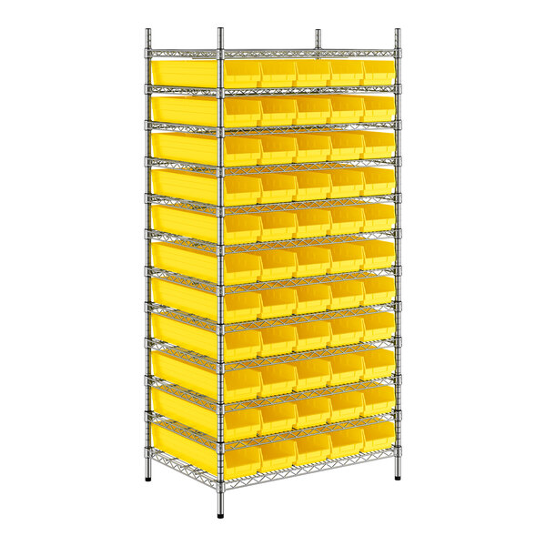 Regency 24" x 36" x 74" Wire Shelving Unit with 55 Yellow Bins