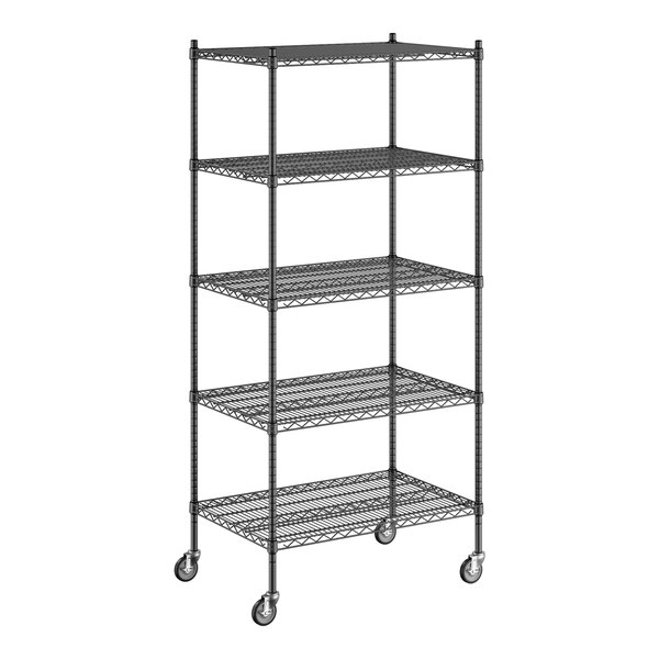 Regency Black Epoxy Mobile Shelving, 5 Shelf – 24" x 36" x 80"