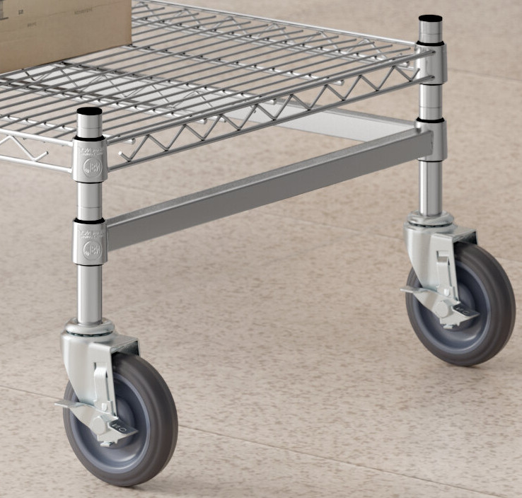 This kit includes (4) 8" mobile posts, (1) 24" x 48" shelf, (4) pairs of split sleeves, and (1) 3-sided frame. This versatile unit allows you to create a convenient storage solution for your janitorial closet, warehouse, or walk-in cooler.