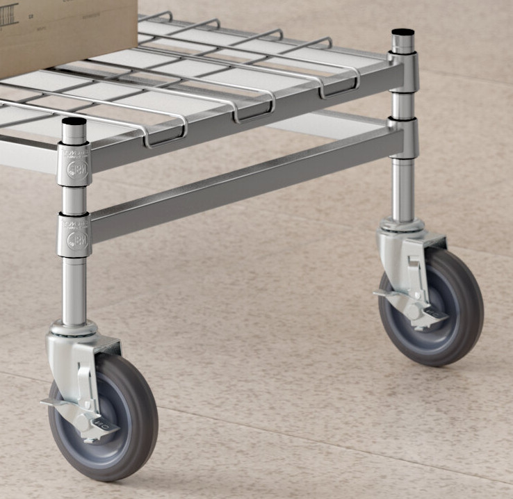 This kit includes (4) 8" mobile posts, (1) 24" x 48" shelf with a wire mat, (4) pairs of split sleeves, and (1) 3-sided frame. This versatile unit allows you to create a convenient storage solution for your janitorial closet, warehouse, or walk-in cooler.